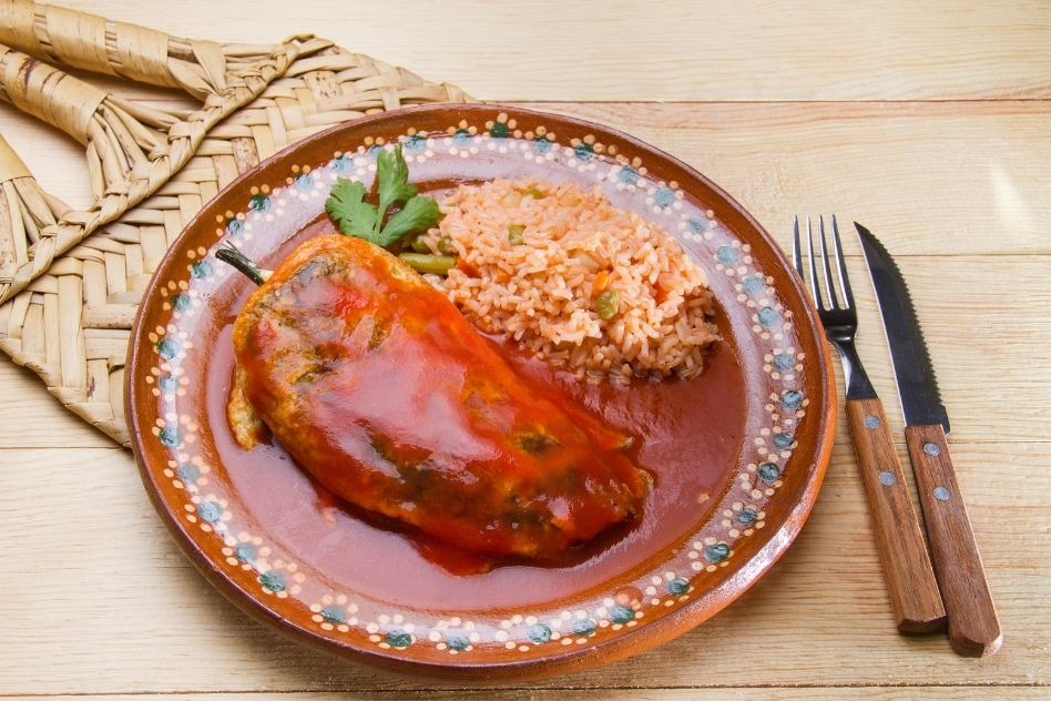 멕시코 시티 근처의 푸에블라 시에서 시작된 칠레 relleno는 확실히 제가 가장 좋아하는 요리입니다. 치즈를 듬뿍 넣은 구운 포블라노 고추입니다. 원하시면 해산물이나 다진 고기도 드실 수 있습니다.